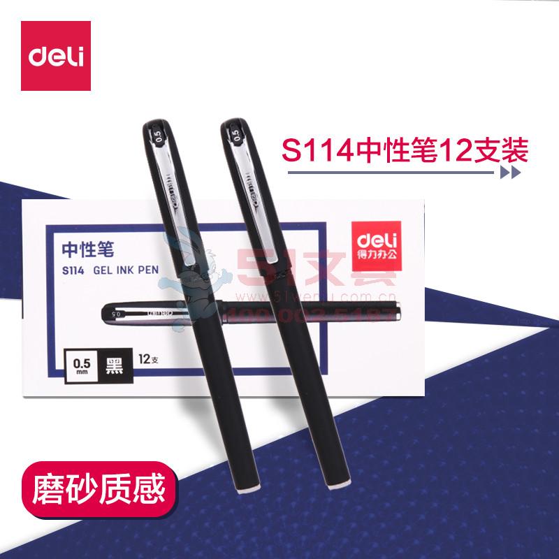 商品名称:得力S114,中性笔磨砂笔杆水笔签字办公笔进口笔珠0.5mm子弹头黑笔 商品编号:11.03.01.0114 品牌:得力/deli 上架时间:2018-08-15 商品毛重:0克 价格单位:支 笔头类型:子弹头 笔头粗细:0.5mm 包装含量:12/144/1728 如果您发现商品信息不准确,欢迎纠错;如果您发现有比51文具价格更低的,欢迎举报