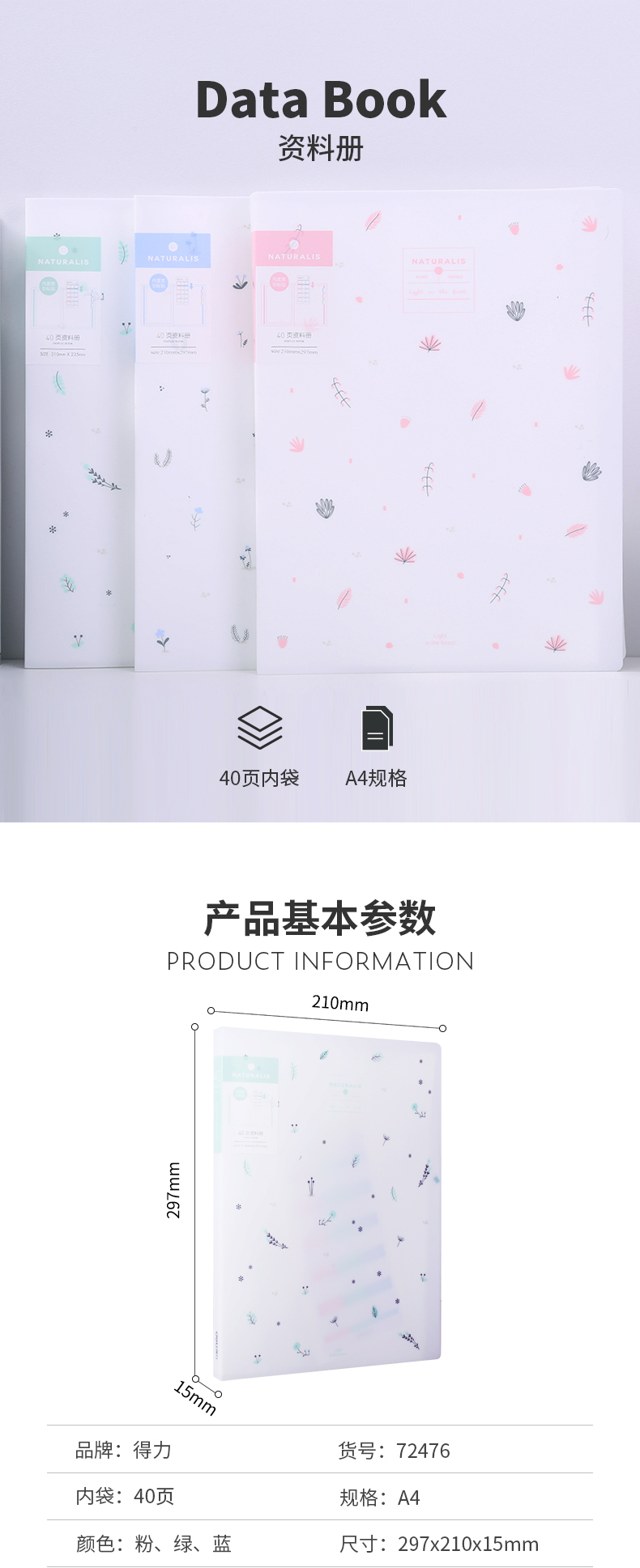 商品名称:得力72476,资料册A4半透学生试卷收纳文件袋办公用 透明索引资料册-40页 商品编号:11.02.02.72476 品牌:得力/deli 上架时间:2018-08-20 商品毛重:0克 规格:A4 类型:40页 含量:1/12/48 如果您发现商品信息不准确,欢迎纠错;如果您发现有比51文具价格更低的,欢迎举报